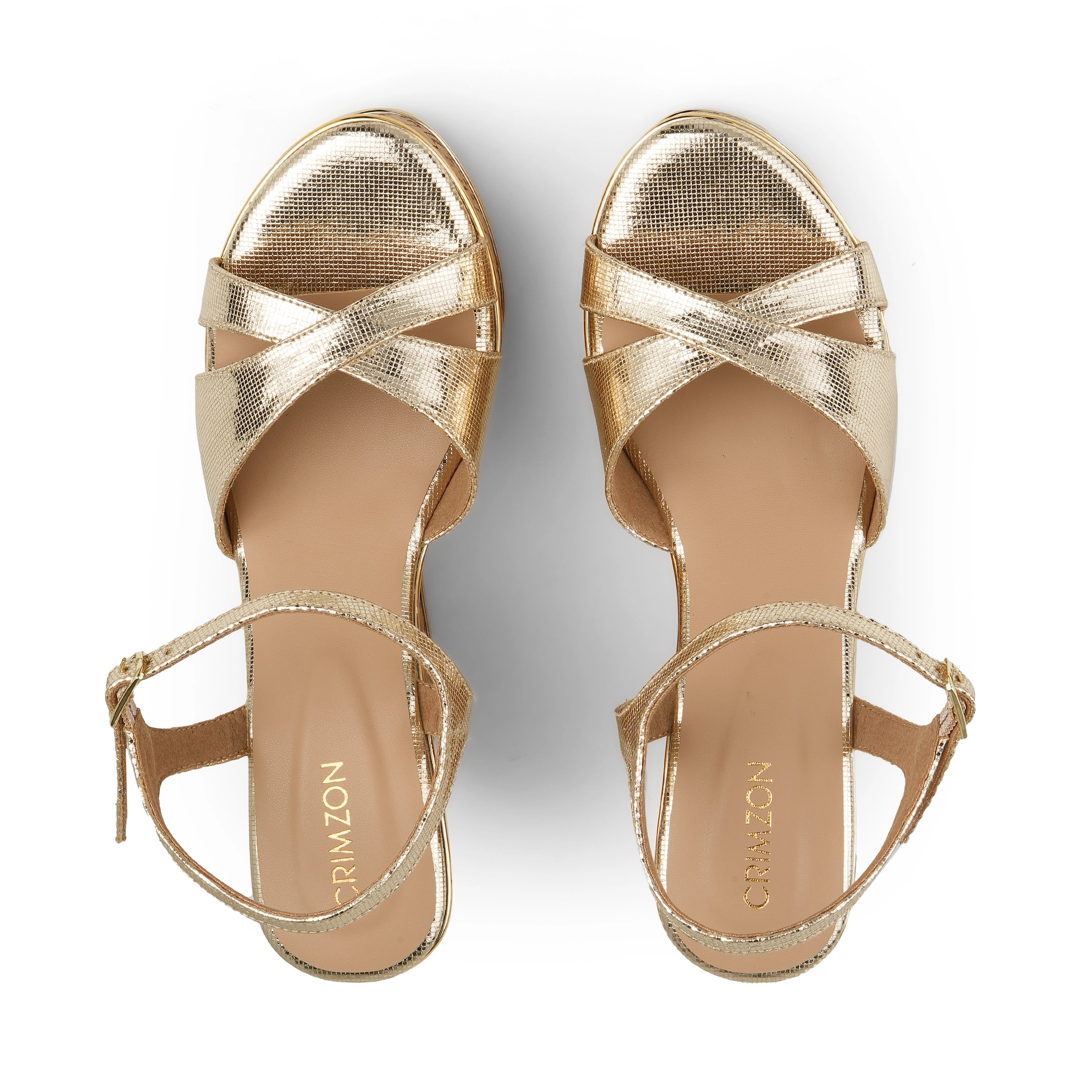 The Crimzon Aiyana Back Strap Heels blend timeless elegance with modern comfort. Designed in a glossy metallic finish with smooth crossover straps, they feature a secure back strap that adds stability while keeping the silhouette sleek. The refined heel height makes them perfect for festive occasions, evening outings, and effortless day-to-night dressing.