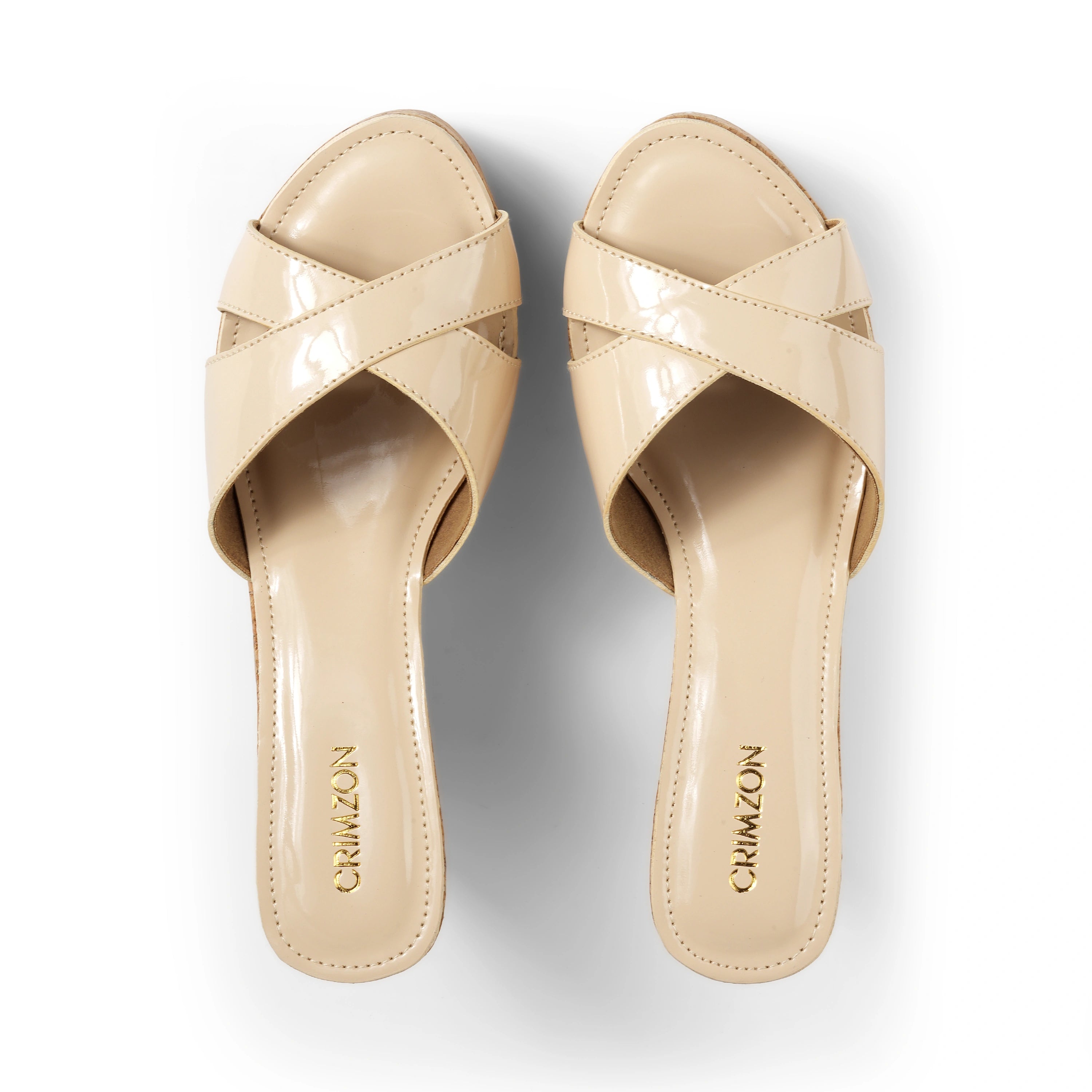 Our Aiyana wedges feature cross straps in light nude faux leather against a cork heel. Classy yet easy to wear these slip-on Wedges are lightweight and comfortable. These women’s shoes form part of our timeless collection and can be worn round-the-clock.