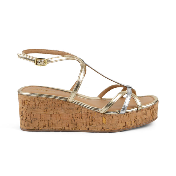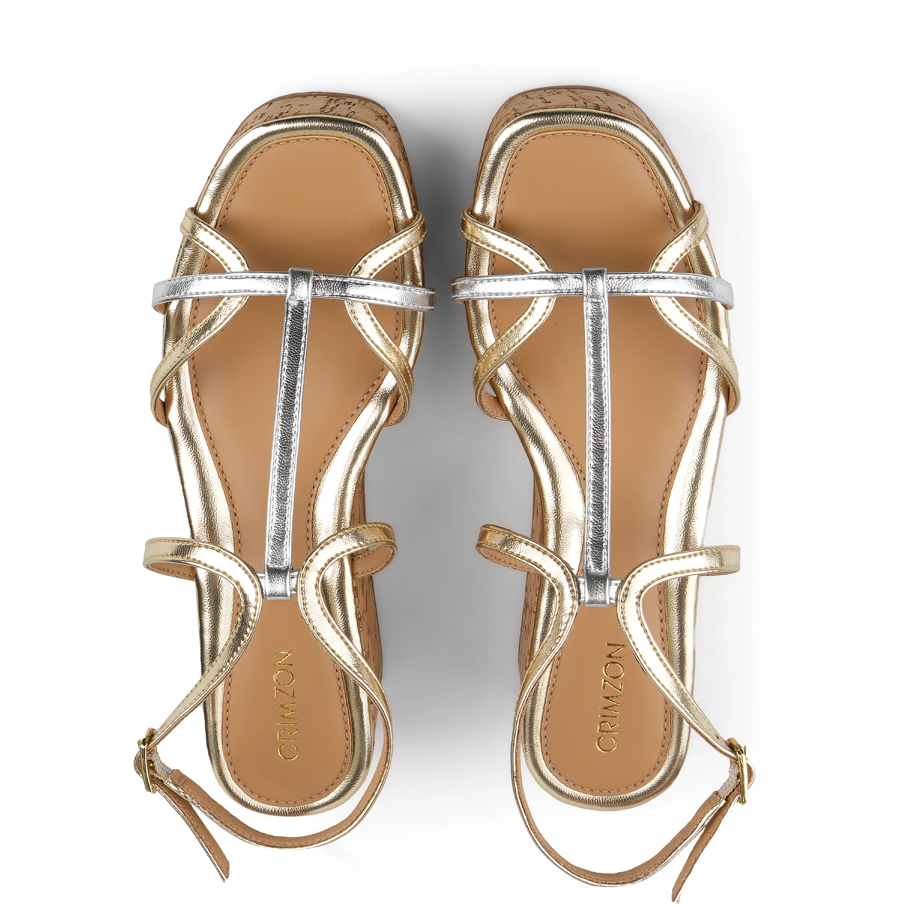 The Crimzon Solara Sandals are designed for days that call for effortless style and all-day comfort. Crafted with soft metallic gold and silver straps, they add a subtle shimmer that pairs beautifully with both casual and elevated looks. The lightweight cork wedge offers gentle lift without compromising ease, making it perfect for travel days, brunch plans, or relaxed evening outings.