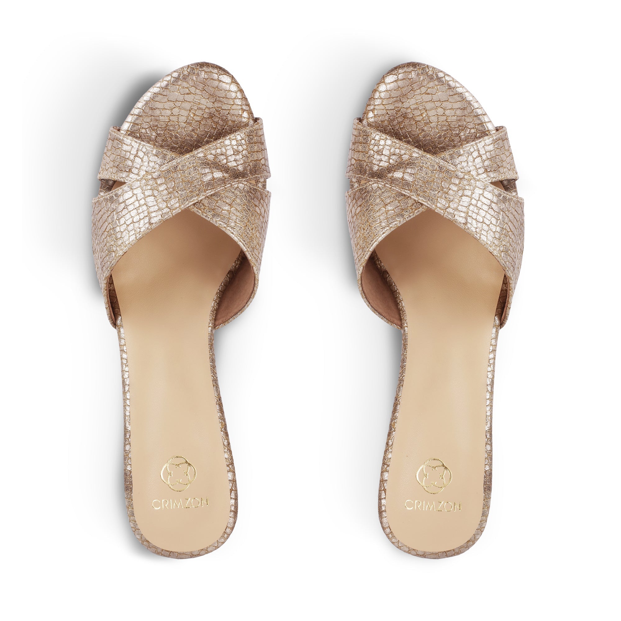 Our Aiyana wedges feature cross straps in bronze faux leather against a cork heel. Classy yet easy to wear these slip-on wedges are lightweight and comfortable. These women’s shoes form part of our timeless collection and can be worn round-the-clock.