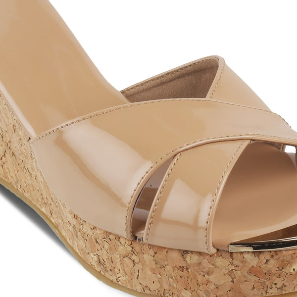 Our Aiyana wedges feature cross straps in nude patent faux leather against a cork heel. Classy yet easy to wear these slip-on wedges are lightweight and comfortable. These women’s shoes form part of our timeless collection and can be worn round-the-clock.