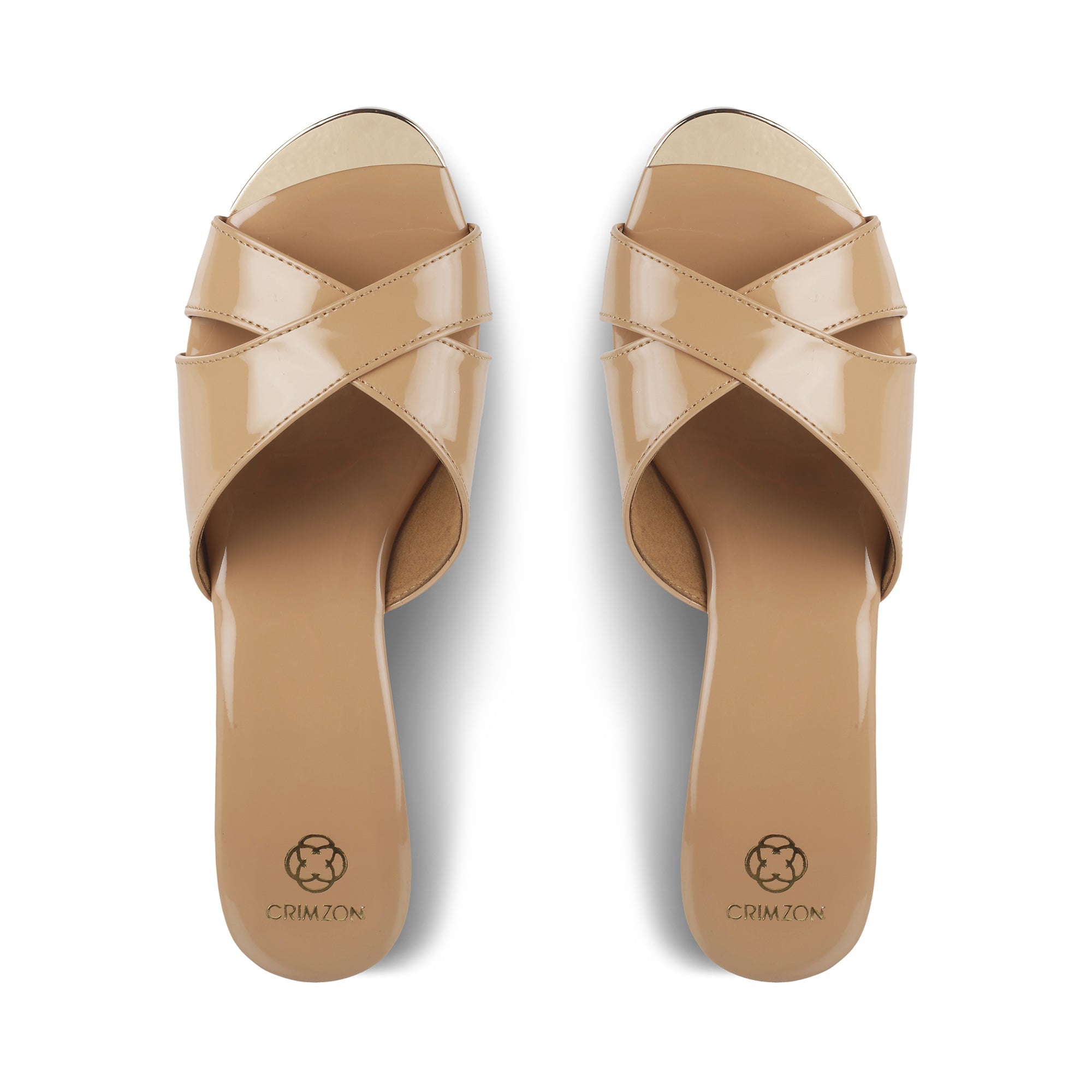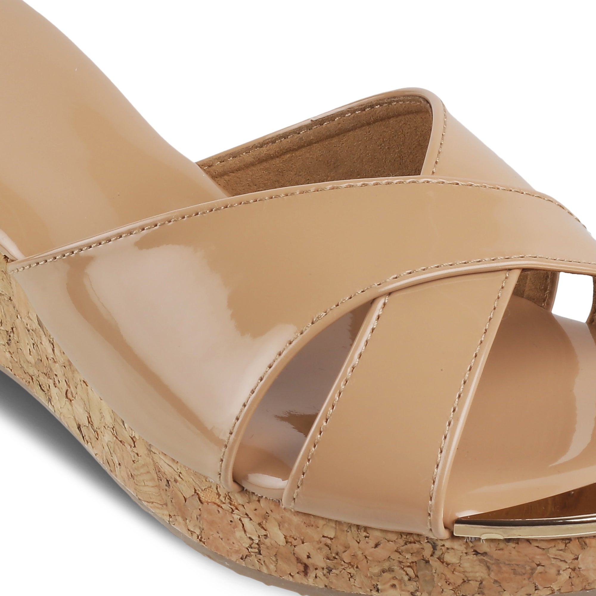Our Aiyana wedges feature cross straps in nude patent faux leather against a cork heel. Classy yet easy to wear these slip-on wedges are lightweight and comfortable. These women’s shoes form part of our timeless collection and can be worn round-the-clock.