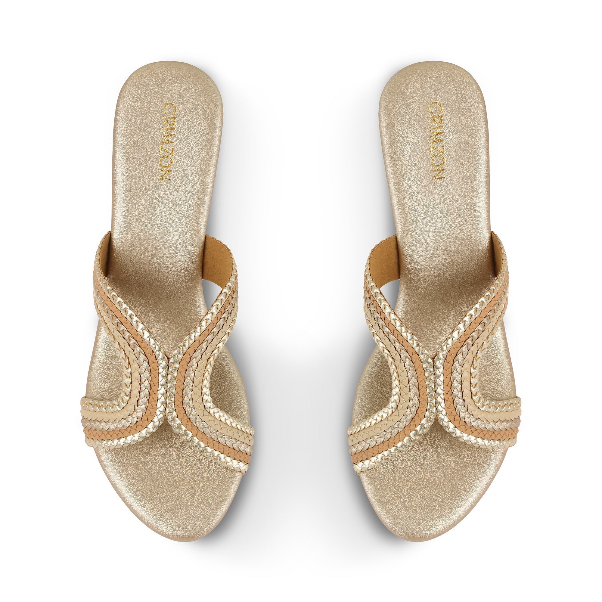 Experience all-day comfort and support with Crimzon’s champagne Analisa wedges. Designed with a stylish beige and gold braided strap and a wedged heel that provides just the right amount of height. Analisa blend fashion and comfort effortlessly.