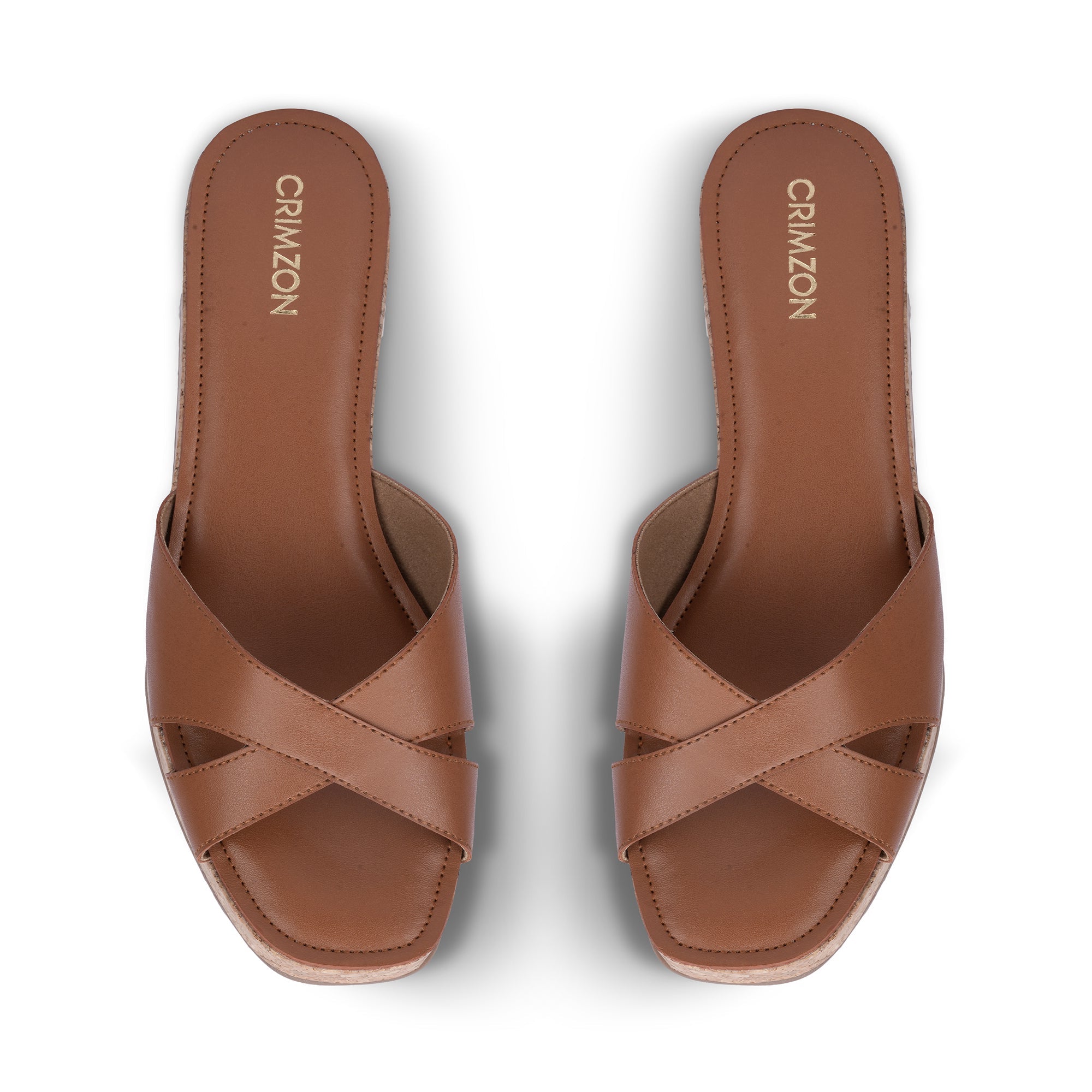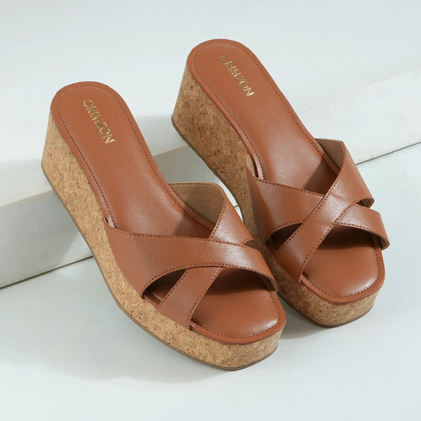 Our tan cork heel wedges are your ideal party plus-ones. This sophisticated pair of ladies shoes is the perfect accompaniment you need to complement an out-there outfit without taking away from it.