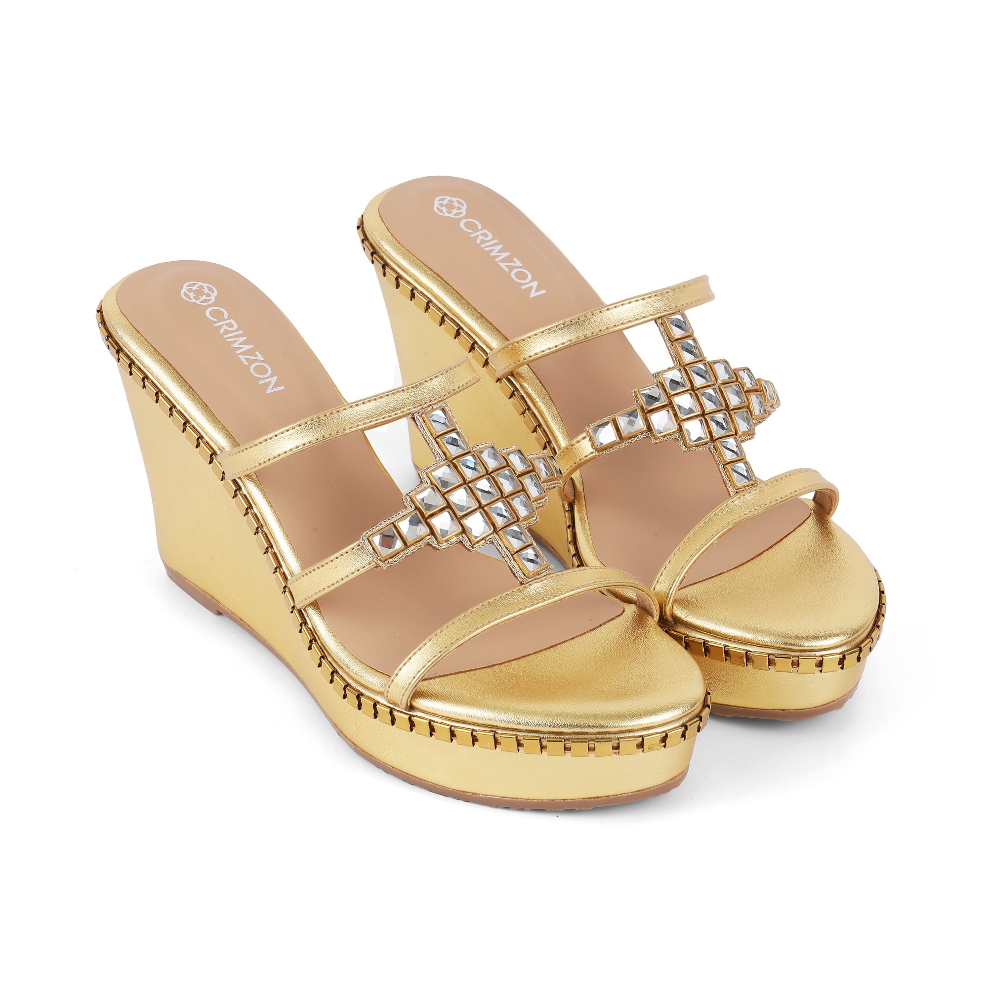 Featuring a studded mirrored upper on a stunning gold wedge, these shoes are designed to elevate your style with subtle elegance. Amani offers unparalleled comfort and support, thanks to the added cushioning that ensures pleasure in every step. Perfect for any event, these shoes let you bring your A-game while keeping your feet happy all night long.