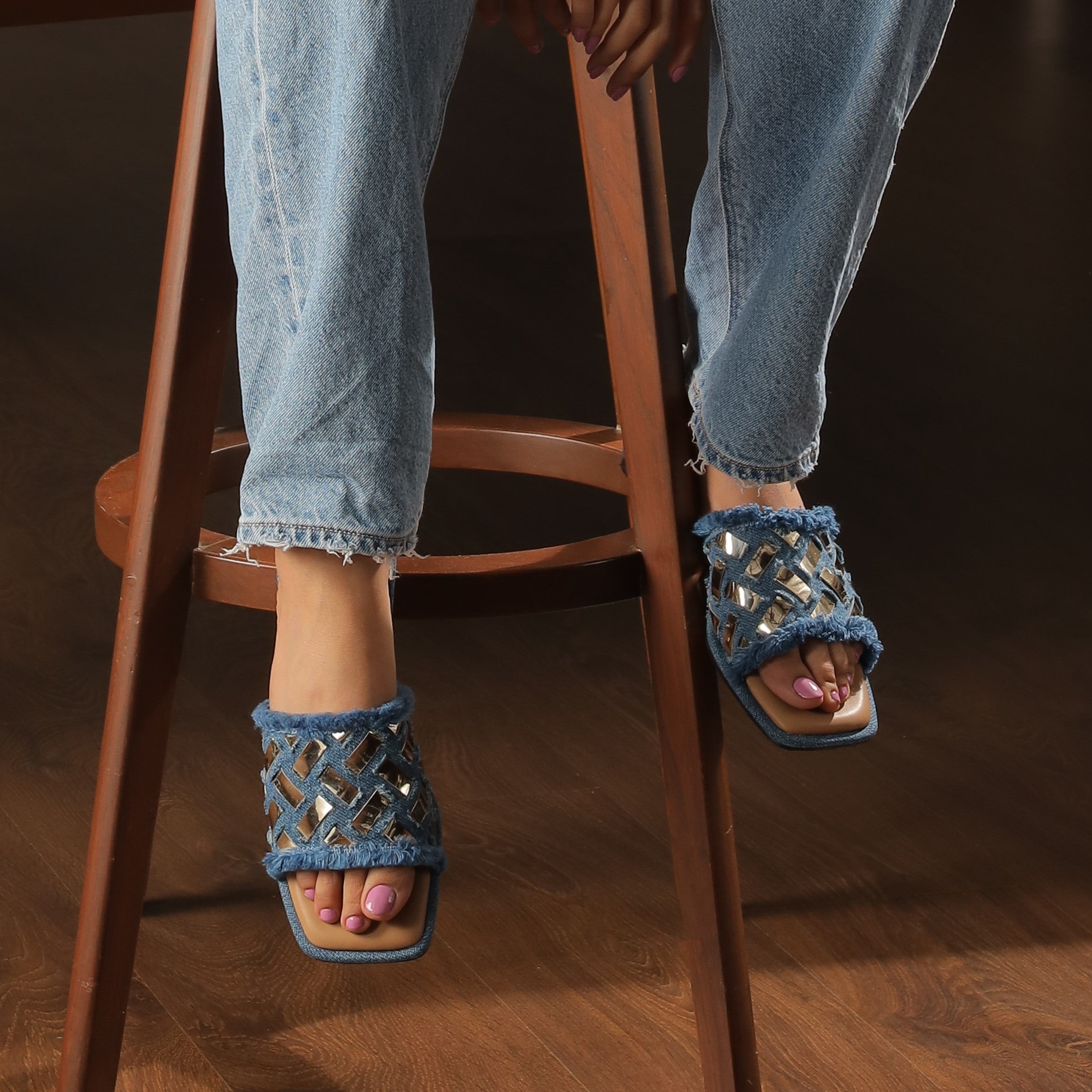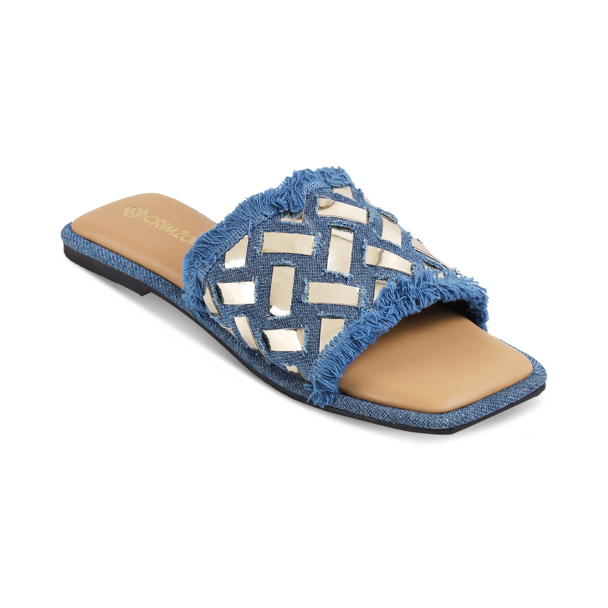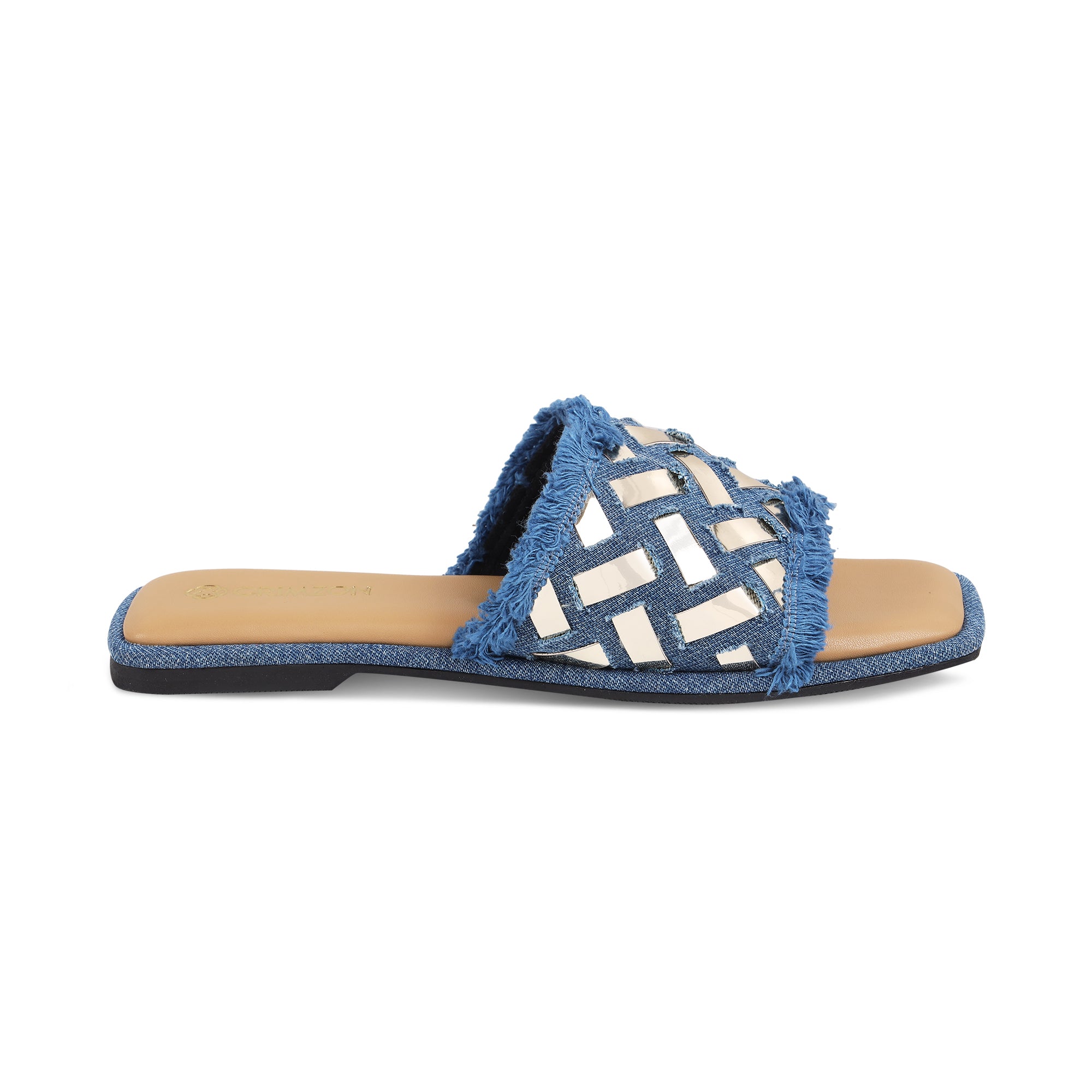 Who says basic needs to be boring? Our gold denim slides are all about easy breezy comfort without compromising on style. These women’s shoes will perfectly complement your movie night outfit as well as your Brunch look.
