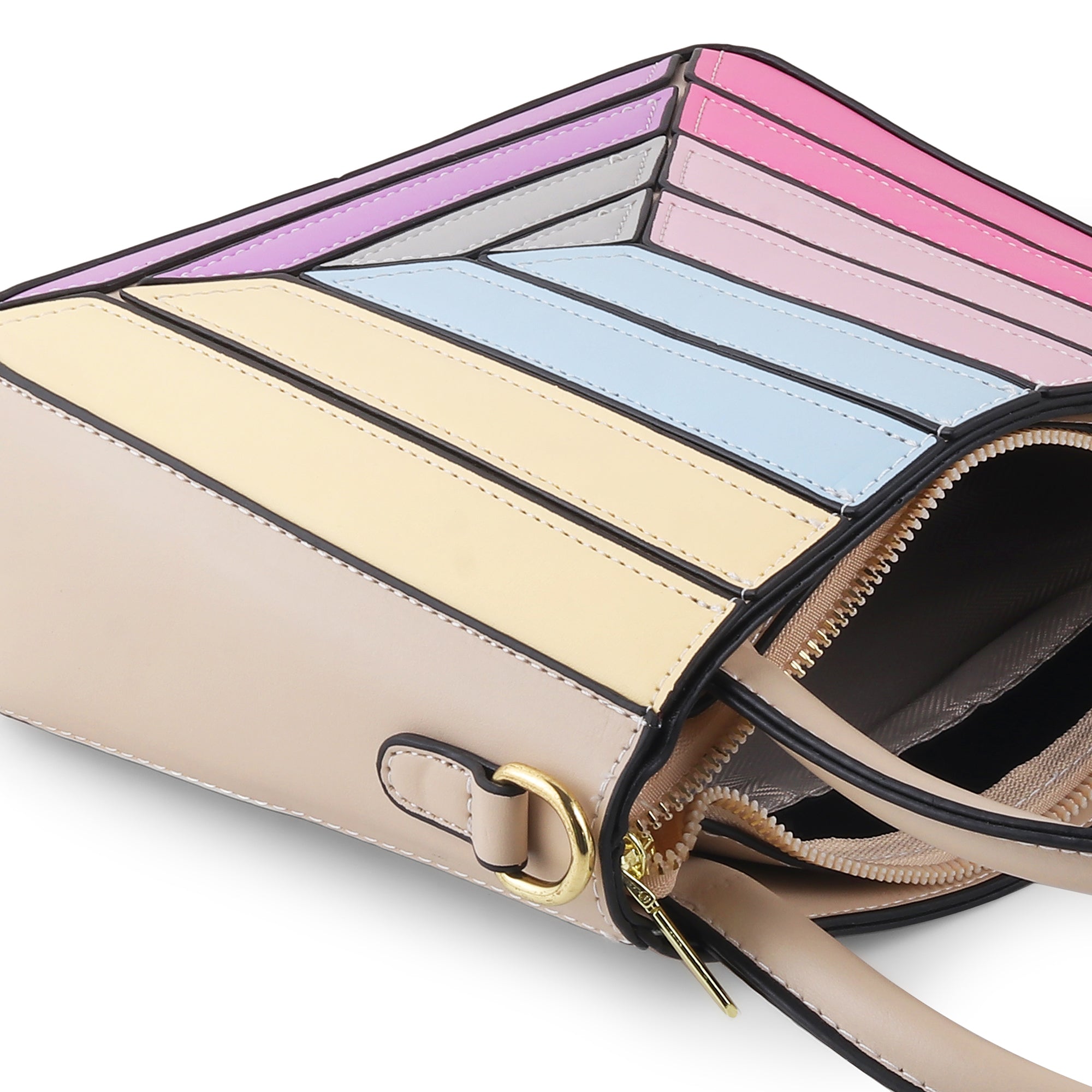 Elevate your fashion game with our Fergie bag. Crafted with precision and adorned in a vibrant, colorful geometric pattern, this accessory effortlessly merges sophistication with a playful edge, ensuring you stand out in style.