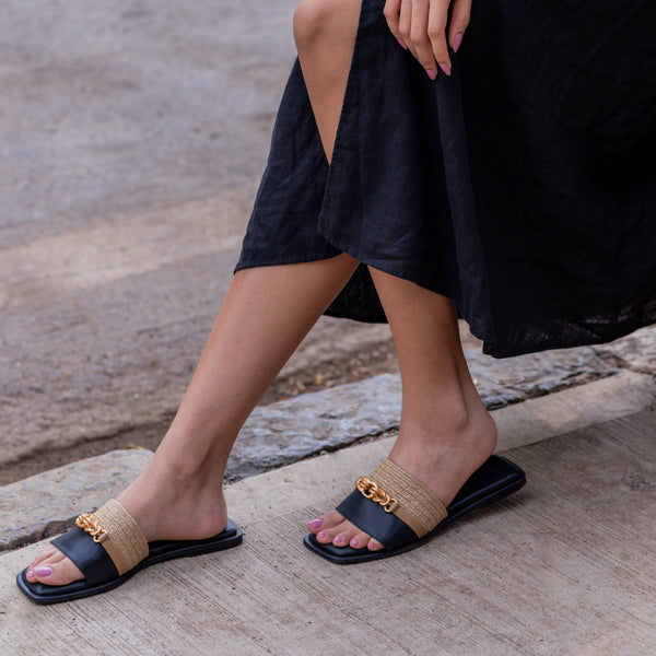 Classic comfort meets summer chic with the Ivy flat. Available in black, these flats feature stunning raffia details that add a touch of texture, while a gleaming gold buckle elevates the look. Perfect for day or night, Raha offers effortless style and endless comfort, exclusively from Crimzon!