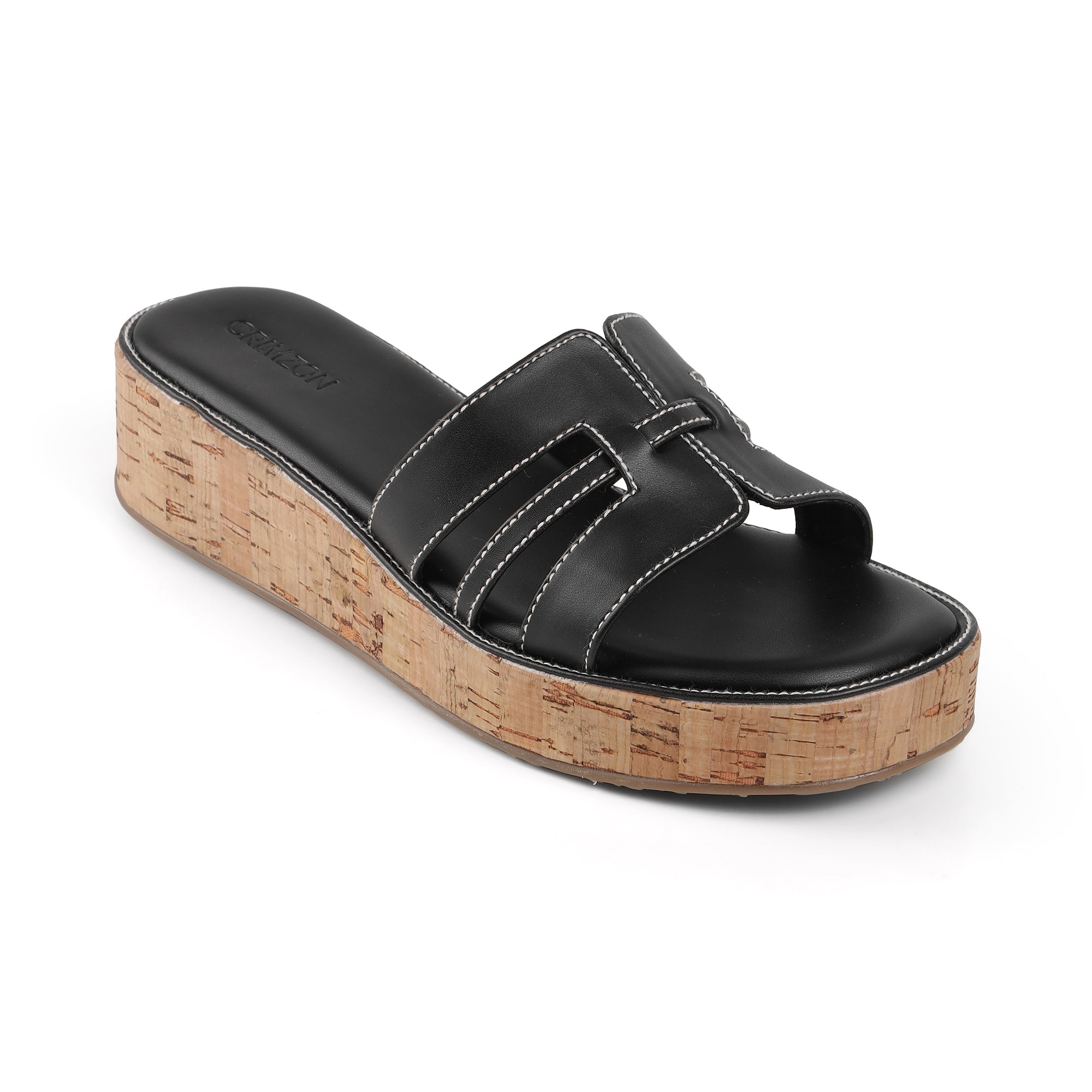 Style your feet right in our black platforms, Lyra that are all about comfort. Classy yet easy to wear these slip-on platforms are light weight and comfortable. They form part of our timeless collection and can be worn round-the-clock.