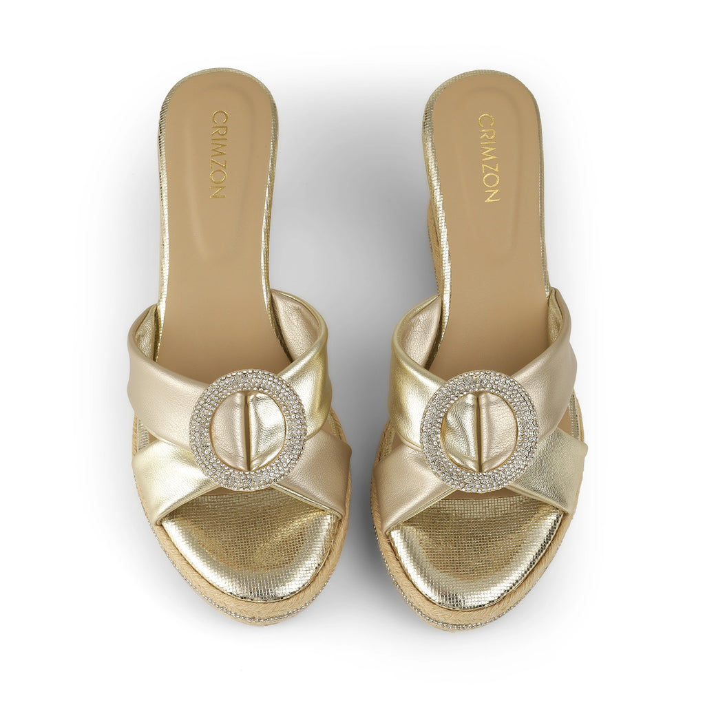 Our Mehira wedges feature cross straps in light gold faux leather heel. Classy yet easy to wear these slip-on wedges are lightweight and comfortable. These women’s shoes form part of our timeless collection and can be worn round-the-clock.