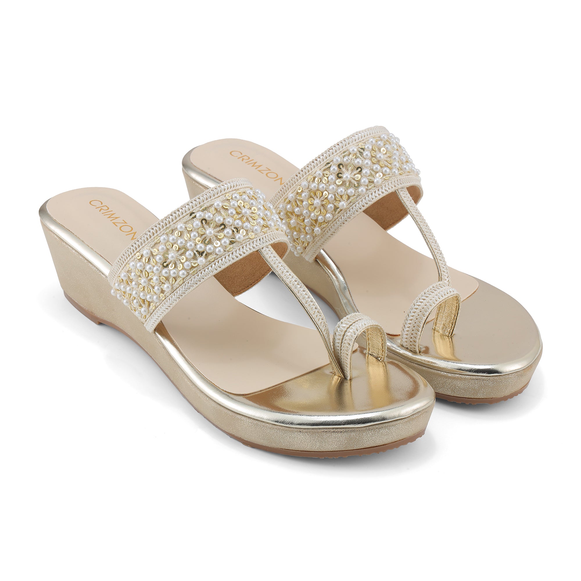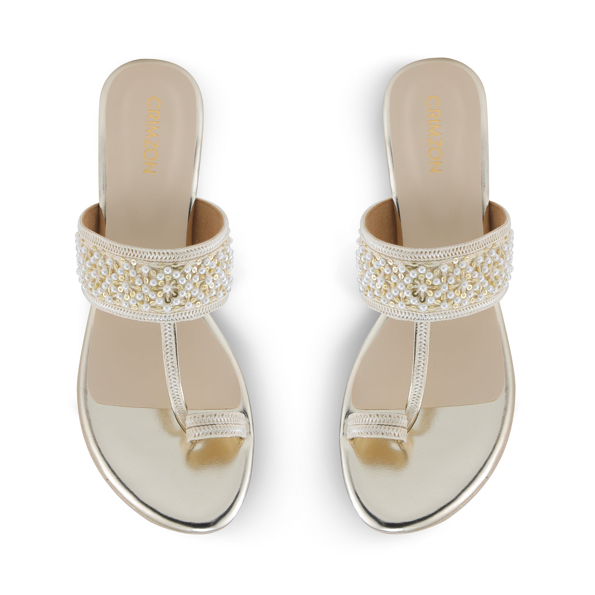 Experience the dynamic fusion of tradition and modernity with our handcrafted modern Kolhapuri. Each pair is carefully embroidered with timeless pearls and sequenced lace, elegantly edged with hand-made detailing.