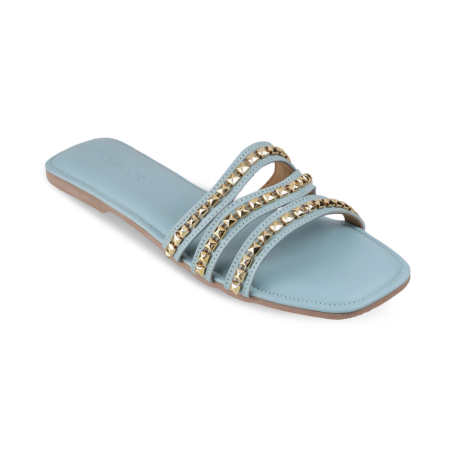 Sun-kissed days call for the Crimzon Waves. These chic flats, available in tan, blue, and green, boast shimmering gold stones that add a touch of playful elegance to your summer wardrobe. Crafted for comfort, the Waves are your perfect companion for strolling the beach, brunching with friends, or exploring the city. Find your perfect summer vibe with Crimzon Waves!