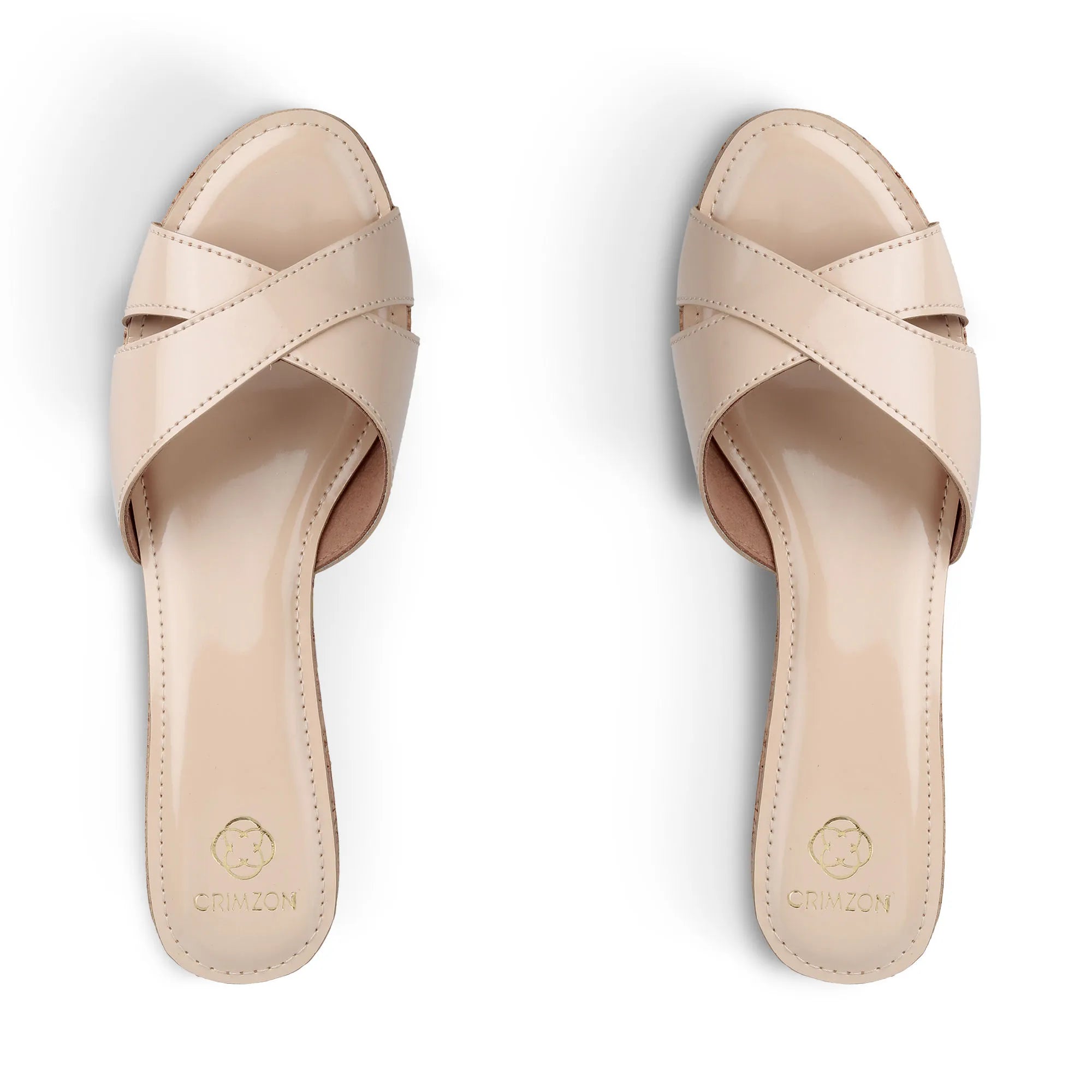 Our Aiyana wedges feature cross straps in light nude faux leather against a cork heel. Classy yet easy to wear these slip-on Wedges are lightweight and comfortable. These women’s shoes form part of our timeless collection and can be worn round-the-clock.