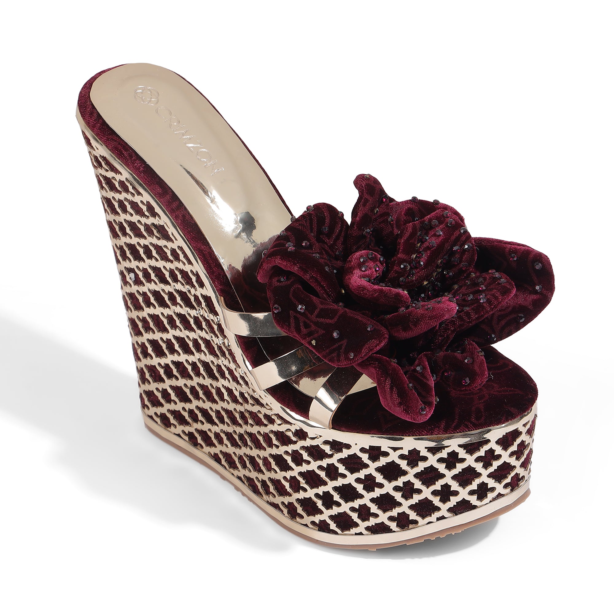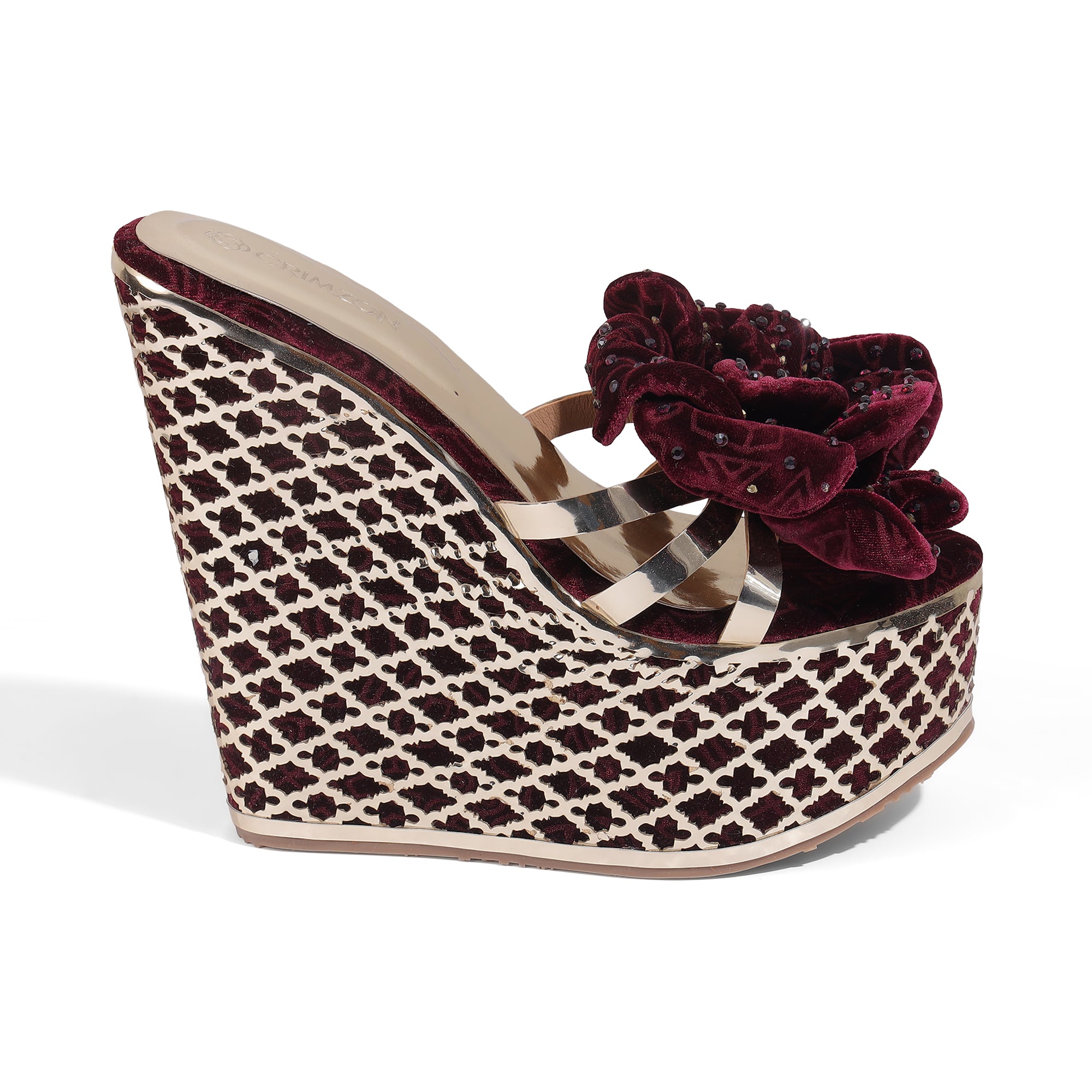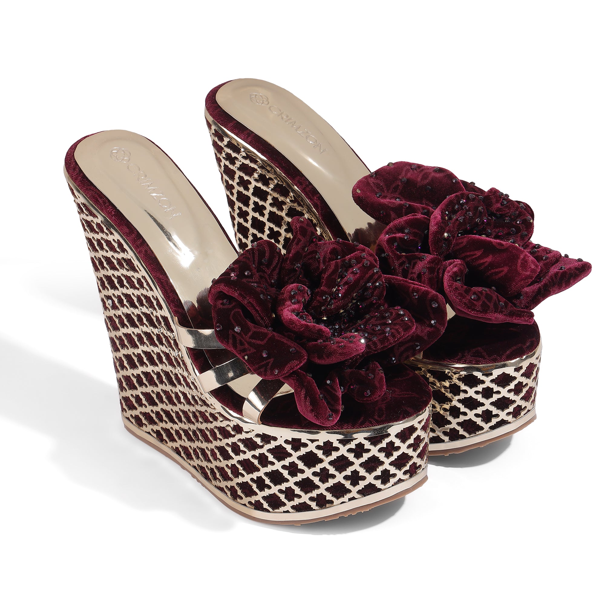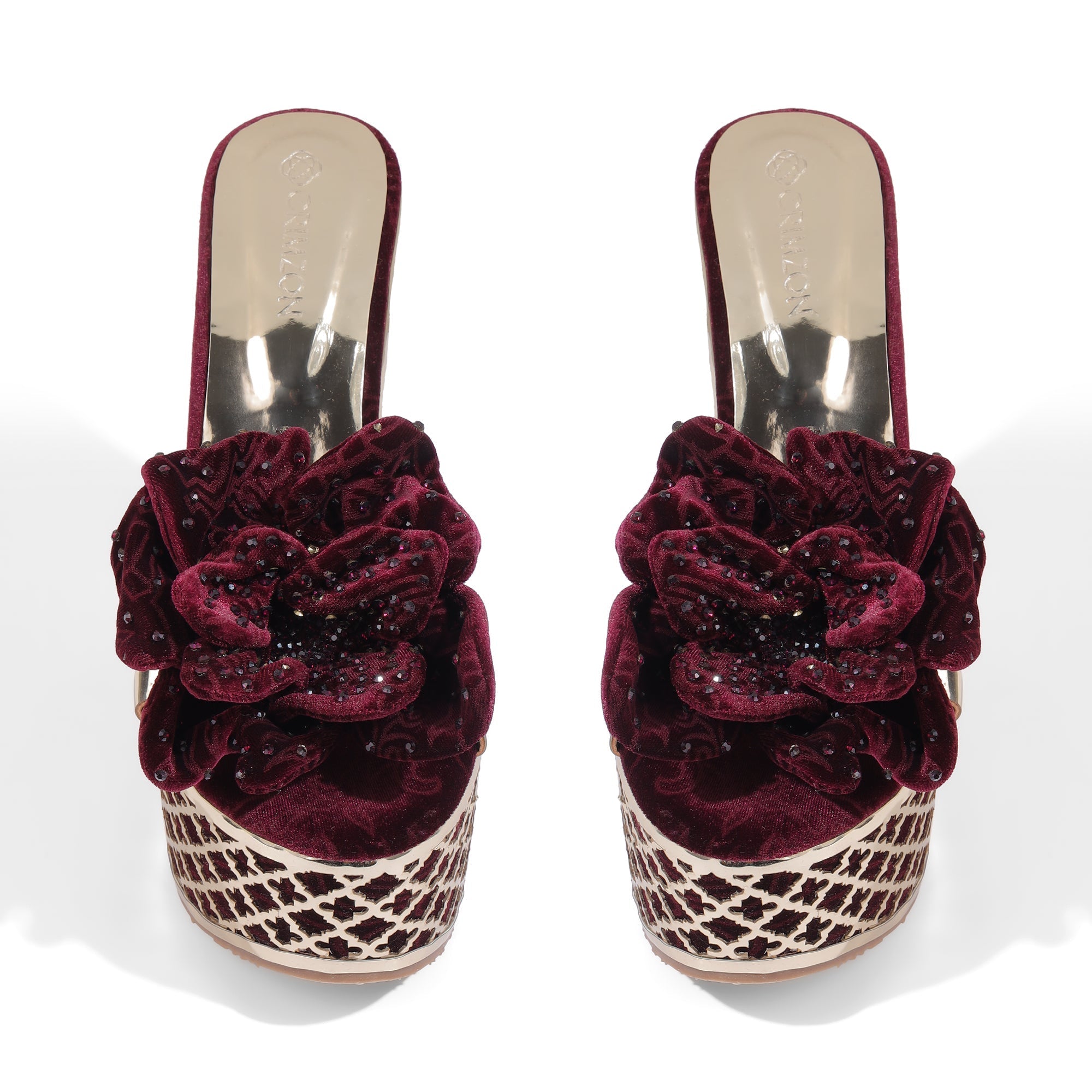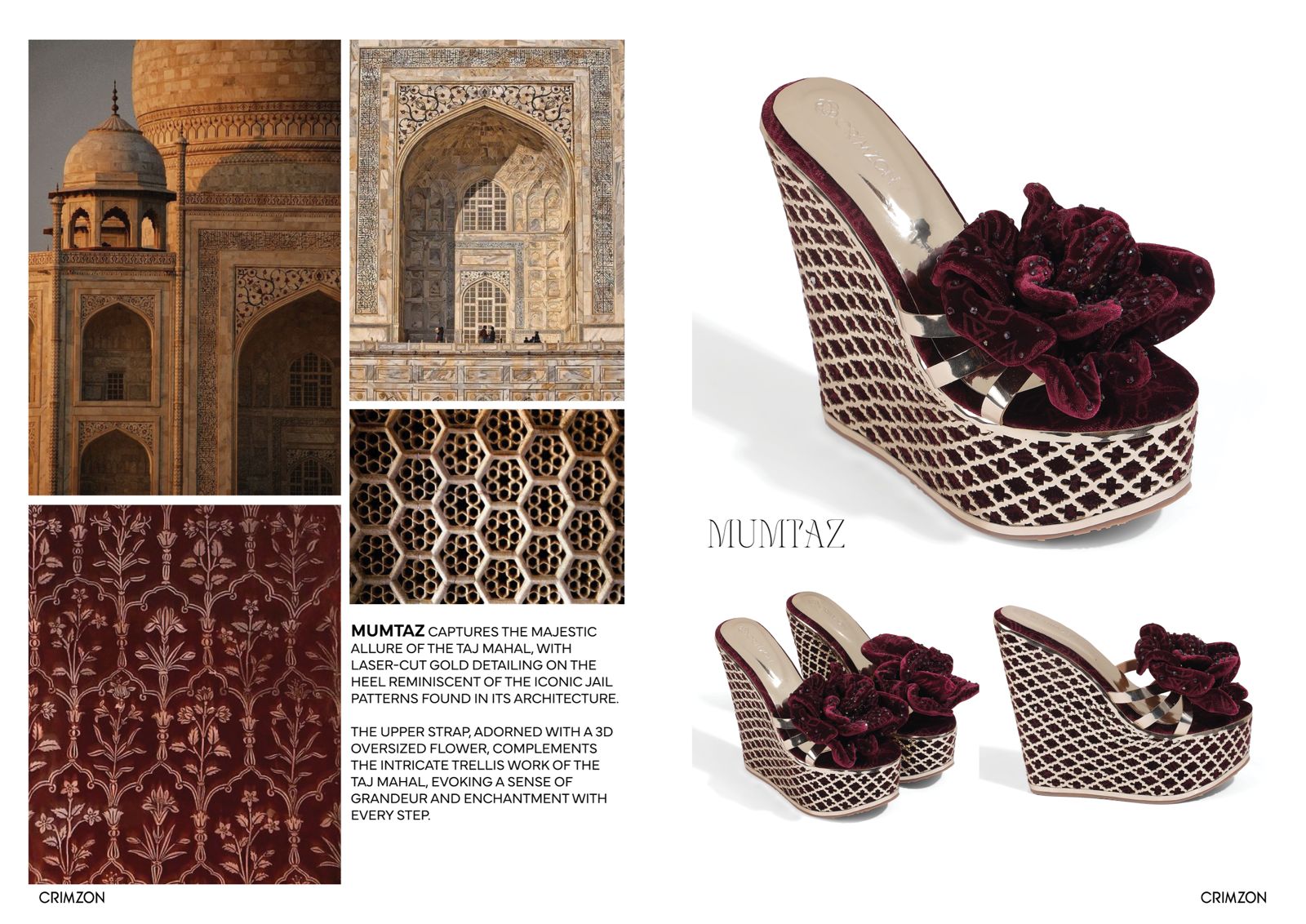 Mumtaz captures the majestic allure of the Taj Mahal, with laser-cut gold detailing on the heel reminiscent of the iconic jail patterns found in architecture. The upper strap, adorned with a 3D oversized flower, complements the intricate trellis work of the Taj, evoking a sense of grandeur and enchantment with every step.