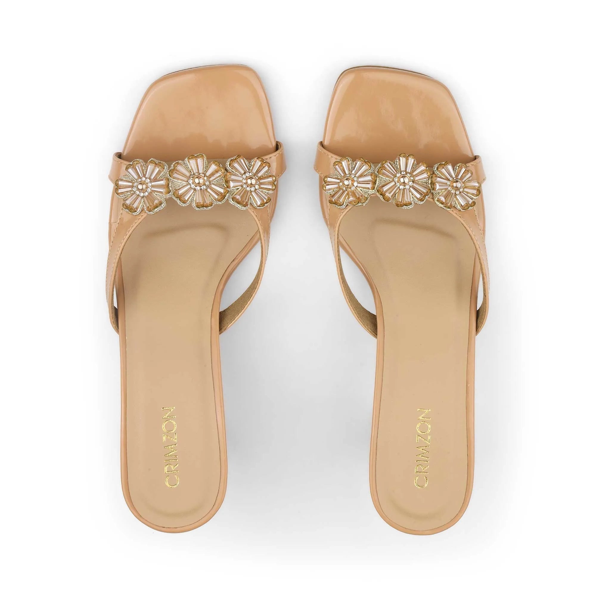 The PARIJAT Nude Block Heels are a perfect balance of timeless style and all-day comfort. Crafted in a soft nude tone, they offer effortless versatility that pairs beautifully with both traditional and contemporary outfits. The structured block heel provides stable elevation, while the sleek silhouette enhances the elegance of every step. Designed with a cushioned insole for lasting comfort, these heels are ideal for festive occasions, celebrations, or everyday styling. Whether worn with sarees, ethnic wear, or modern ensembles, PARIJAT adds a subtle touch of sophistication to your look.