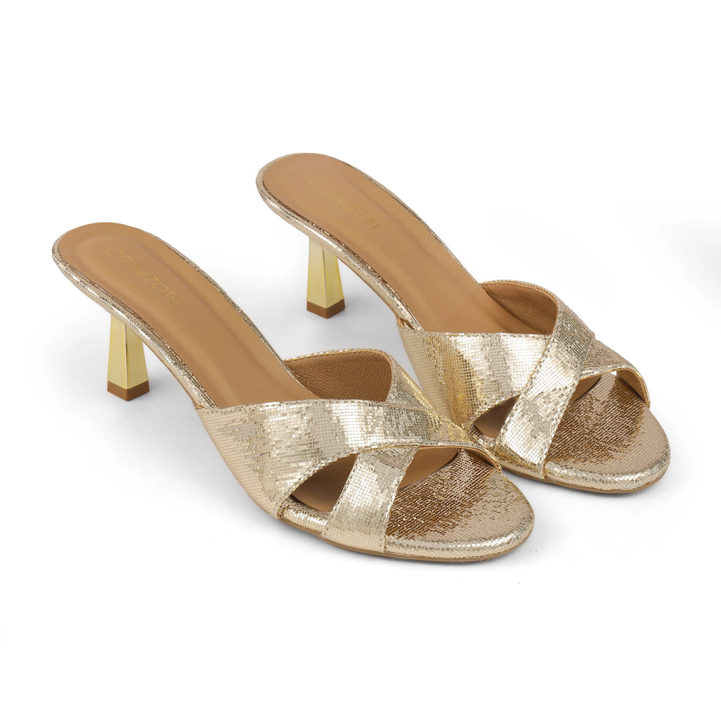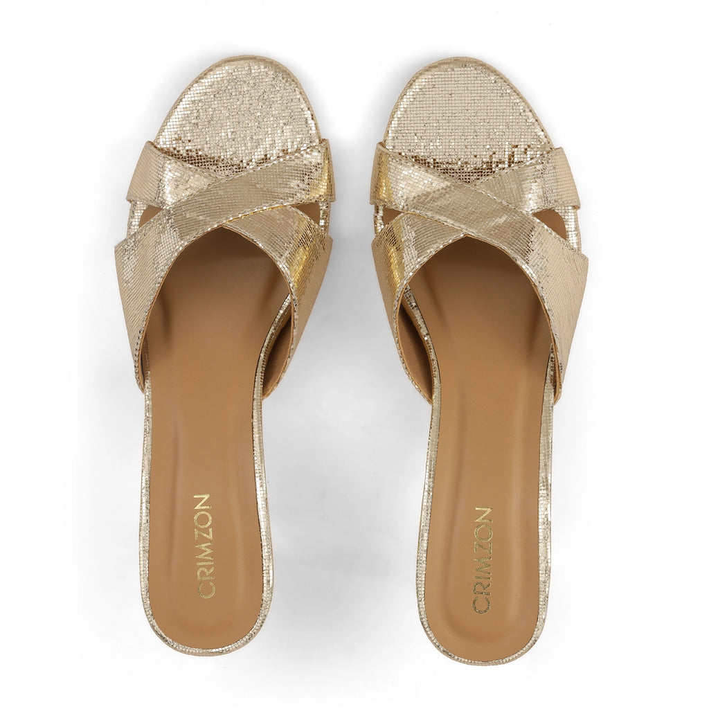 The Crimzon Phoebe Gold Kitten Heels are crafted in a textured gold finish that radiates subtle glamour. Designed with a classic cross-strap silhouette and a trendy kitten heel, they bring the perfect mix of elegance and comfort. Ideal for both day and evening occasions, Phoebe Gold adds a touch of refined shine to every look — timeless yet contemporary.