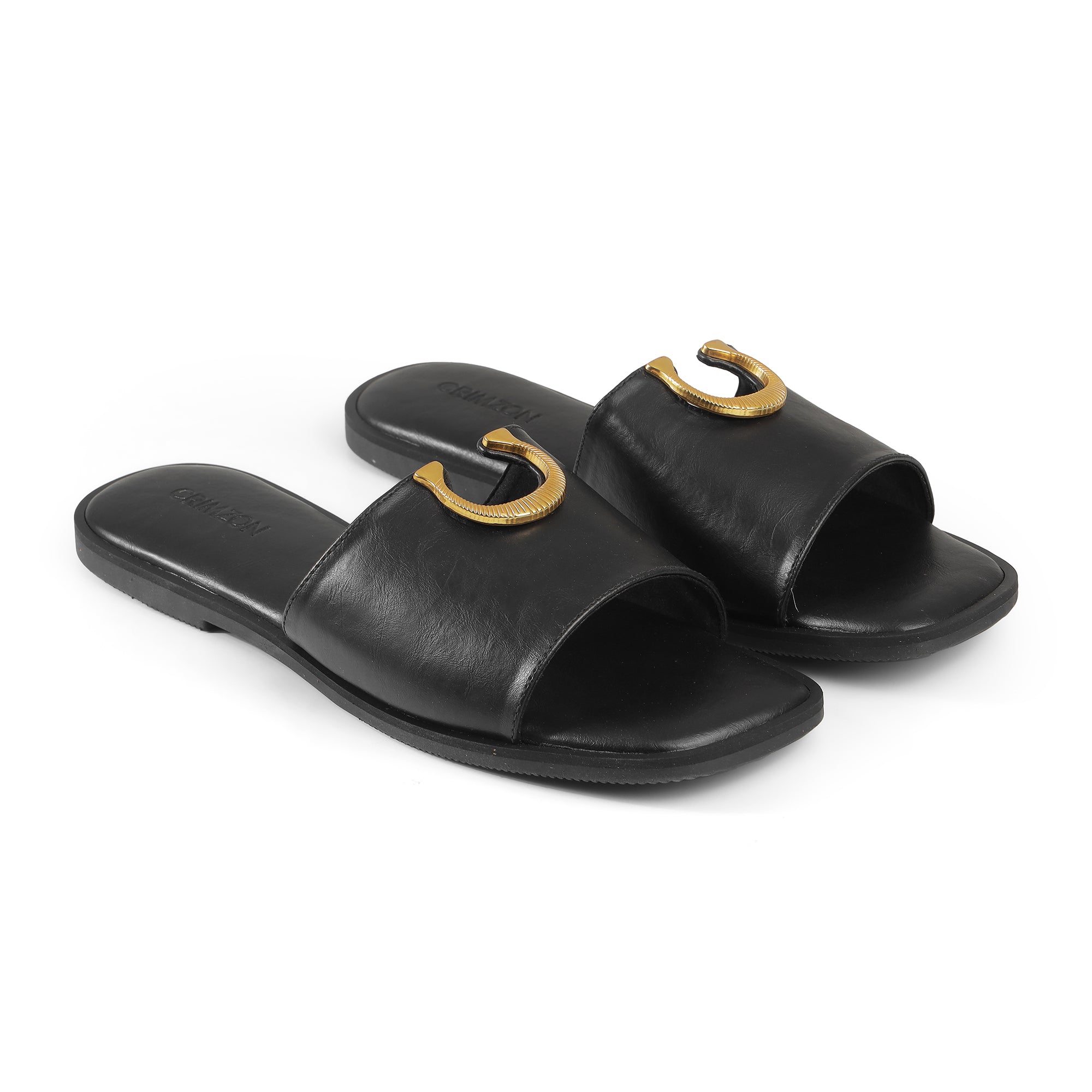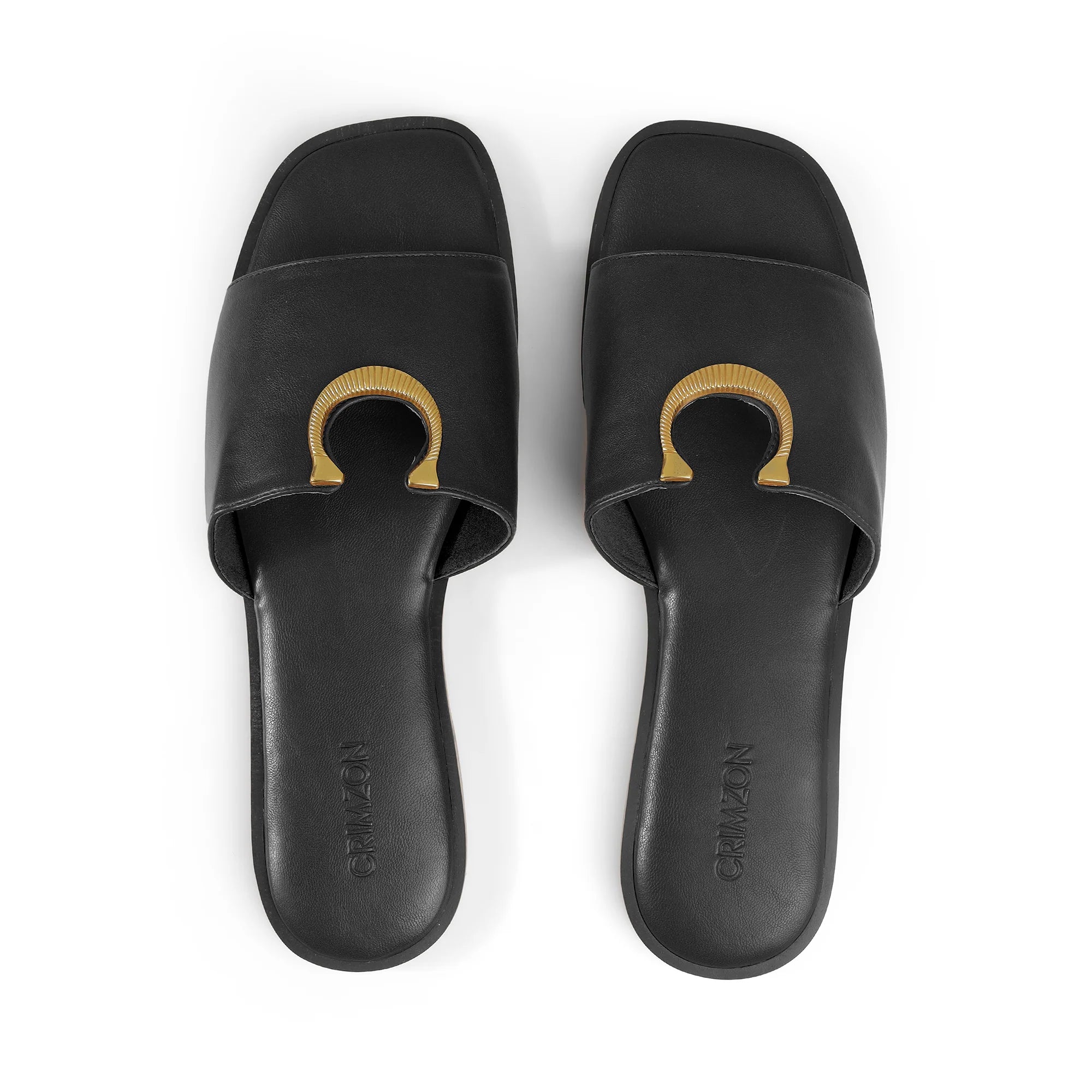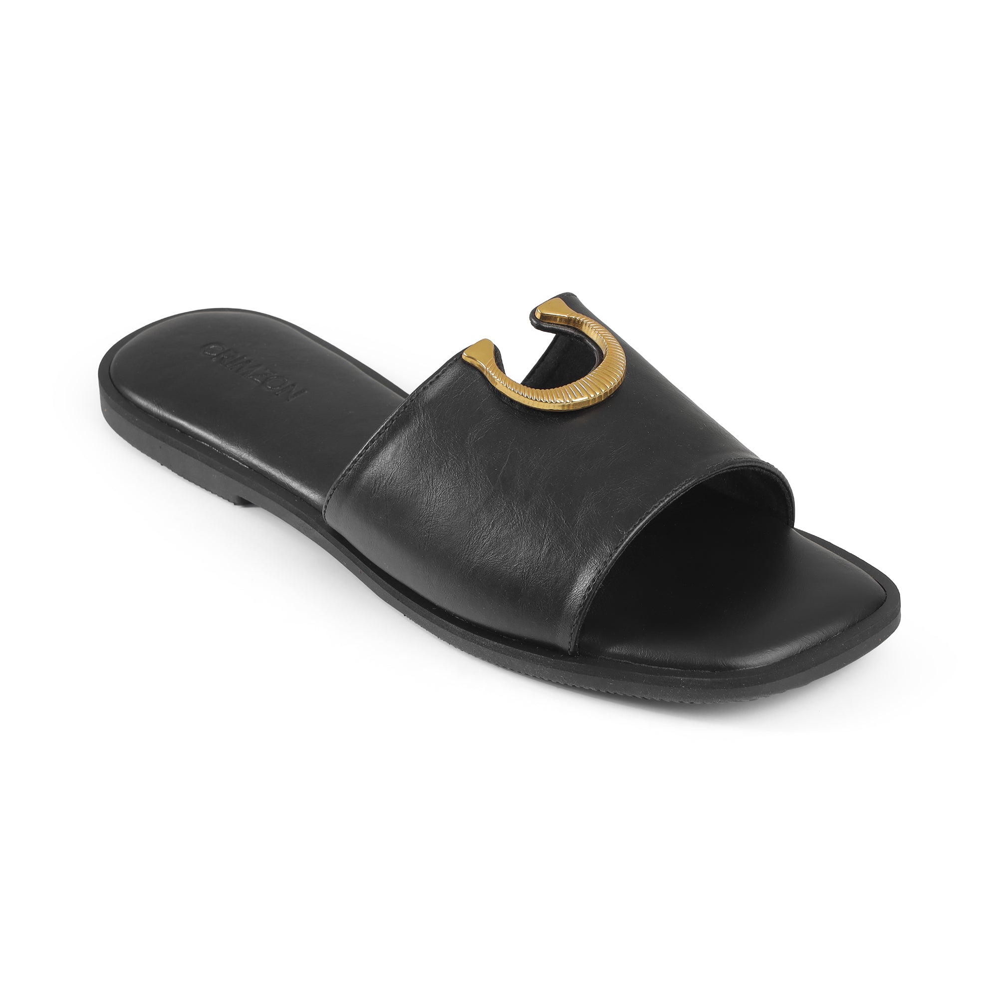 Sleek, timeless, and effortlessly chic — the Crimzon Avery Flats are your new everyday essential. Crafted in a classic black hue, these slip-ons feature a smooth, wide band topped with a sculpted gold-tone horseshoe accent for a refined touch. The cushioned footbed delivers unmatched comfort, while the minimalist silhouette ensures easy styling with everything from tailored trousers to breezy dresses. Whether you’re headed to work or a weekend getaway, Avery keeps you grounded in style.