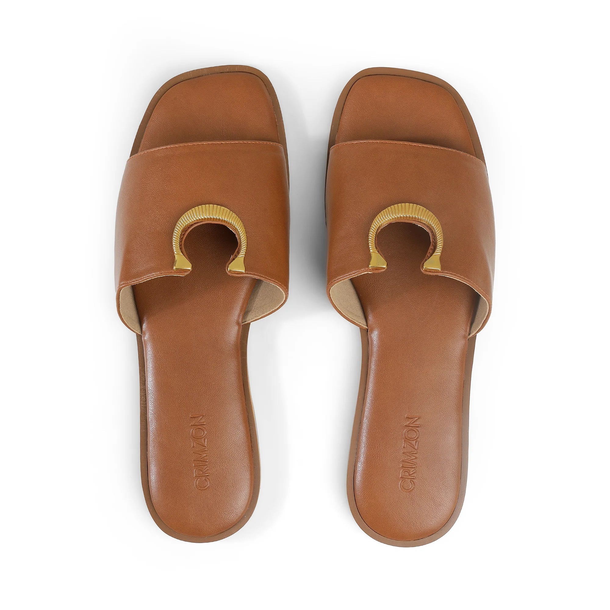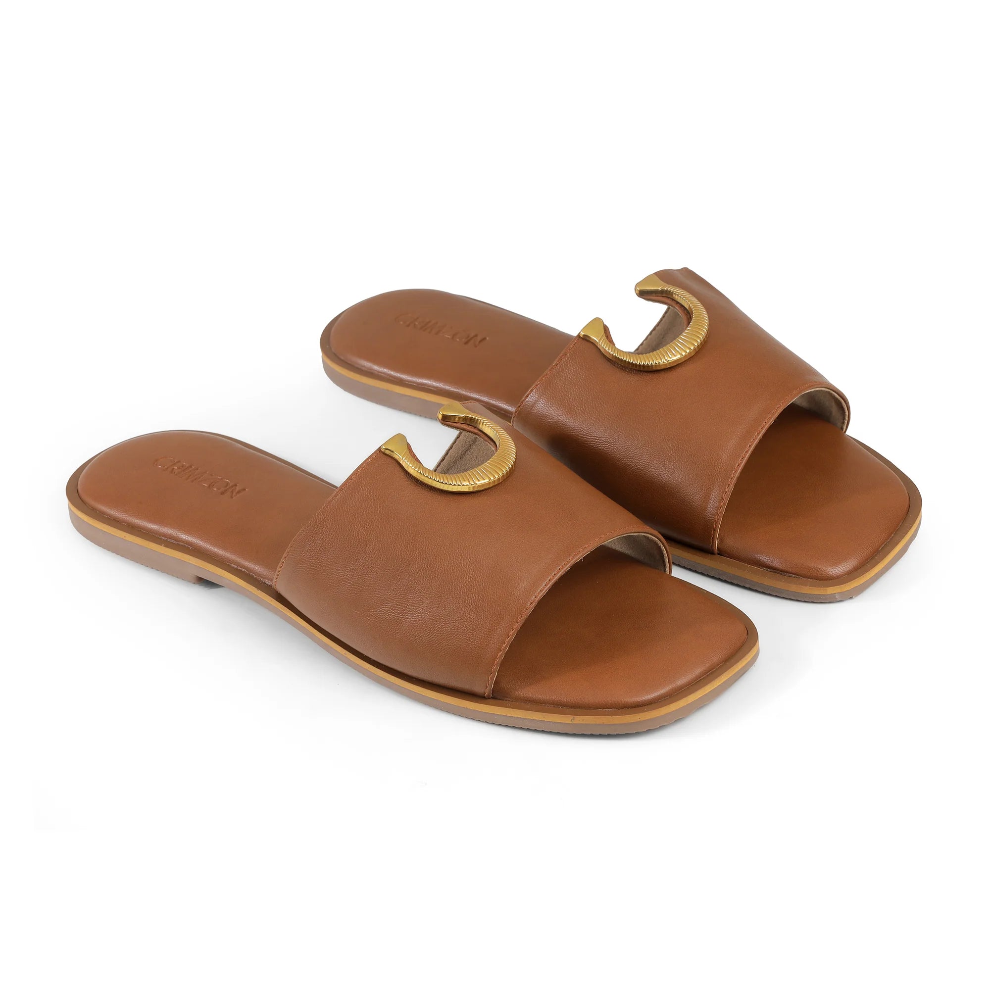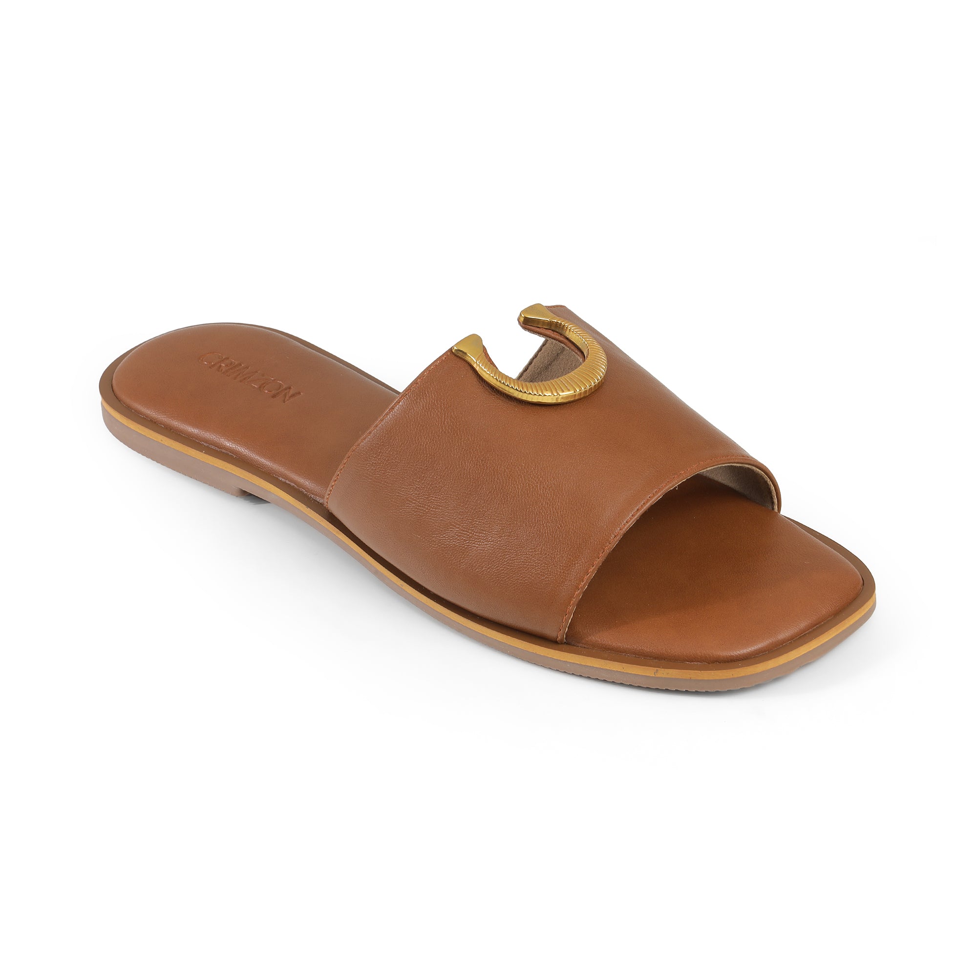 Sleek, timeless, and effortlessly chic — the Crimzon Avery Flats are your new everyday essential. Crafted in a rich tan hue, these slip-ons feature a smooth, wide band topped with a sculpted gold-tone horseshoe accent for a refined touch. The cushioned footbed delivers unmatched comfort, while the minimalist silhouette ensures easy styling with everything from tailored trousers to breezy dresses. Whether you’re headed to work or a weekend getaway, Avery keeps you grounded in style.