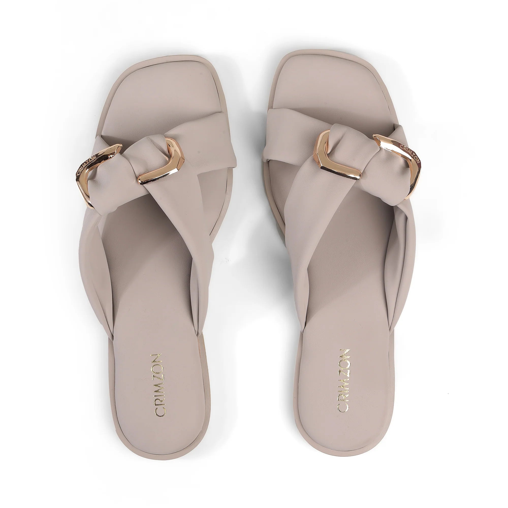 Effortless elegance meets everyday comfort in the Crimzon Reese Flats. Designed in a soft, versatile nude-lilac hue, these slip-ons feature plush padded straps accented with a bold, gold-tone buckle engraved with the Crimzon logo. The cushioned insole ensures cloud-like comfort, while the lightweight sole makes them ideal for all-day wear. From casual coffee runs to evening get-togethers, Reese adds a polished finish to every outfit.