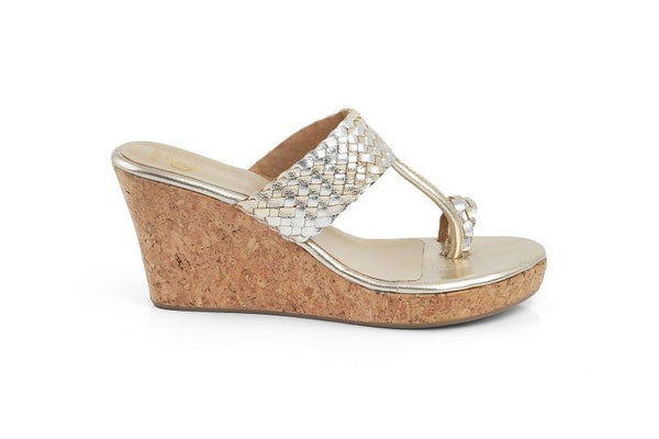 Part of our Intrecciate collection, our Chandni wedges woven in silver and gold add a new dimension to women’s shoes in Kolhapuri style.