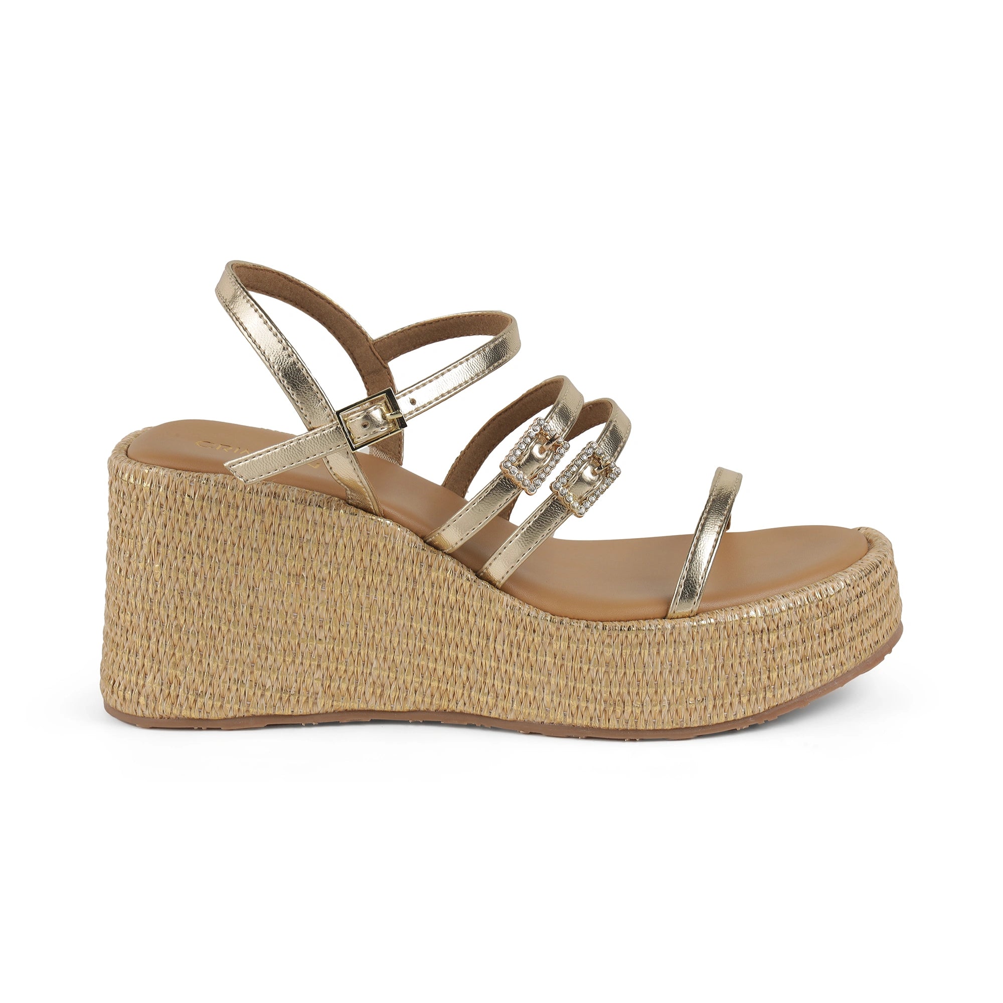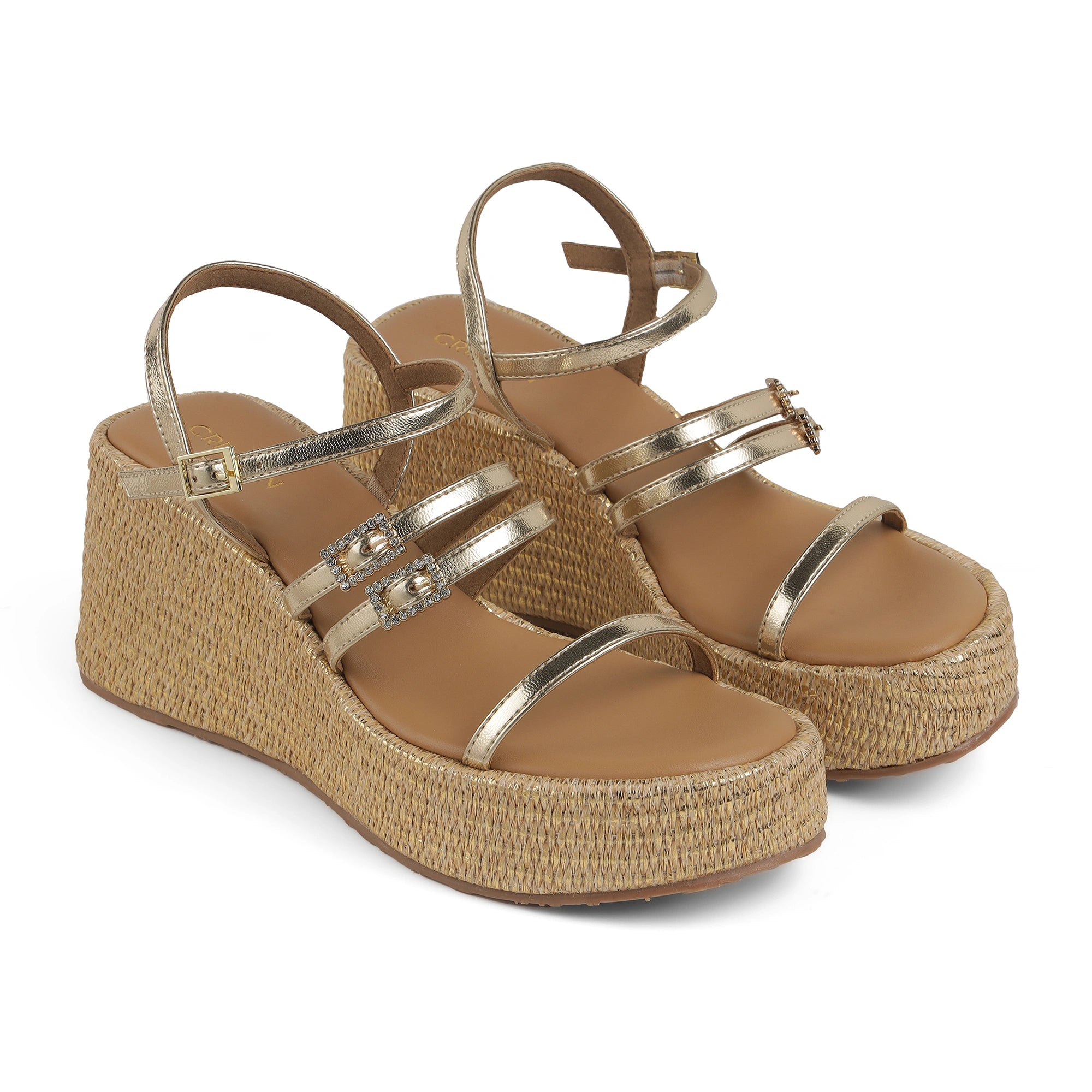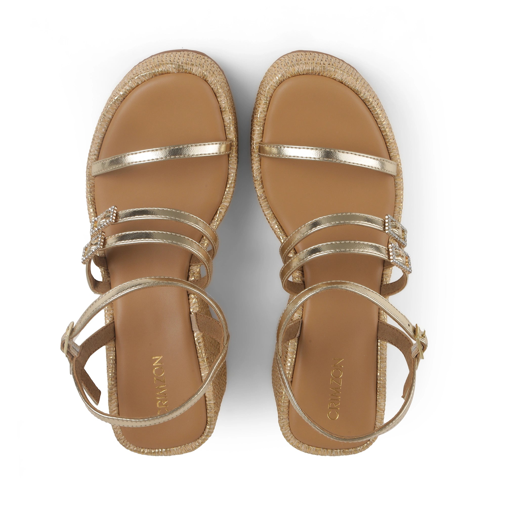 Aurelia Platforms are elevated resort wedges featuring shimmering straps with jewel accents and a textured espadrille-inspired platform sole, designed to bring radiant coastal glamour from golden hour to evening escapes.
