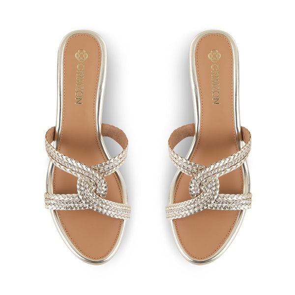 Our Jessica wedge has a braided interlocked upper against an exquisitely crafted wedge. With braided cords and gold heel cover, these ladies shoes provide a dazzling look.