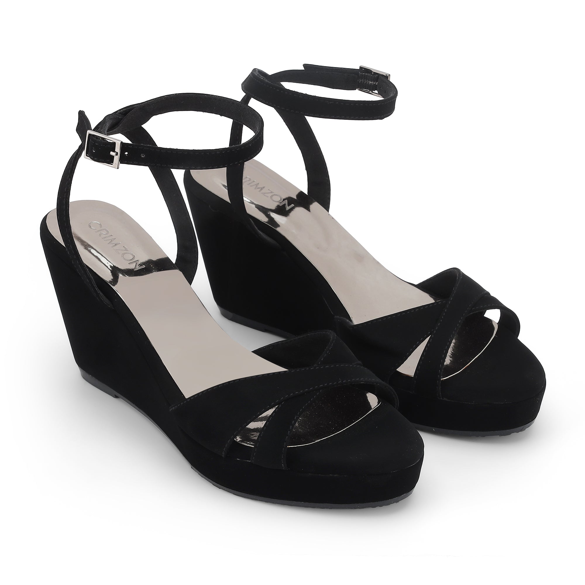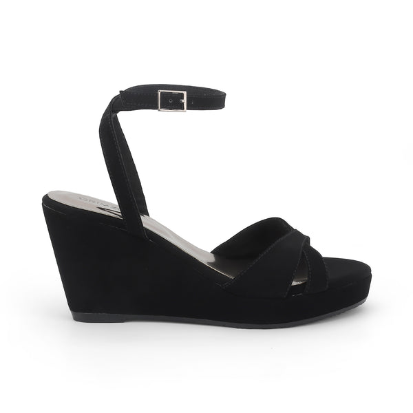 The Aiyana black wedges with a backstrap are the epitome of sophistication and comfort, designed to elevate your style with their sleek silhouette. Crafted from faux suede fabric, these stylish wedges feature a secure back strap that provides exceptional support, making them perfect for both casual outings and formal events. The meticulous craftsmanship ensures durability and a flawless finish, while the versatile design allows you to effortlessly pair them with any outfit.